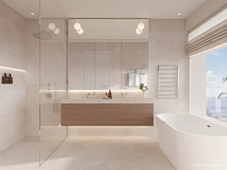 Composée de seulement deux villas luxueuses de 418 m² utiles chacune, chaque propriété dispose d’une piscine individuelle à débordement. Une attention toute particulière a été portée au choix des matériaux de façade et à la mise en lumière des espaces.